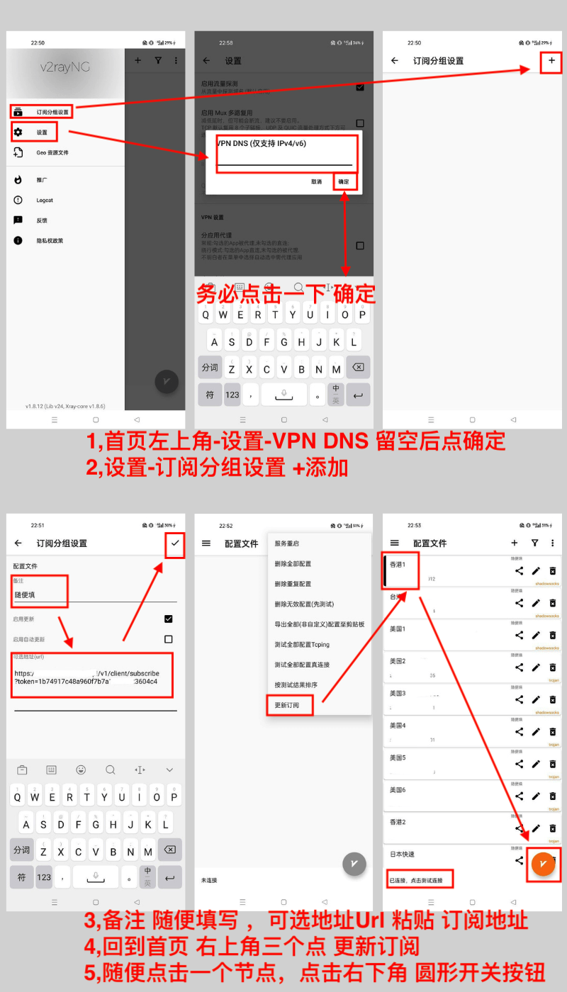 Android安卓 常用的软件有v2rayNG和Clash,本教程都有,二者选其一即可。这里推荐一些安卓可以用的节点