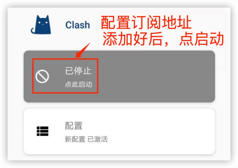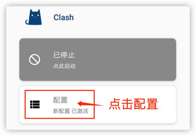 保存 配置选中你刚刚添加的配置- 返回Clash主页,点击