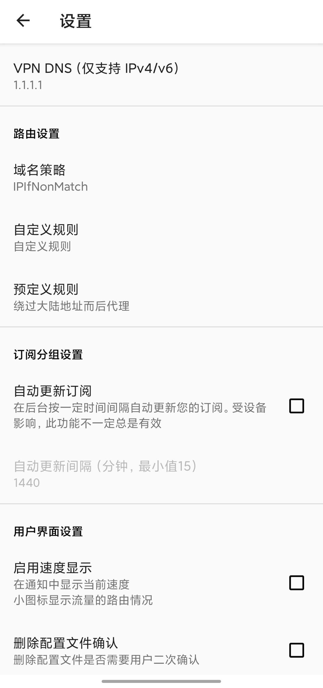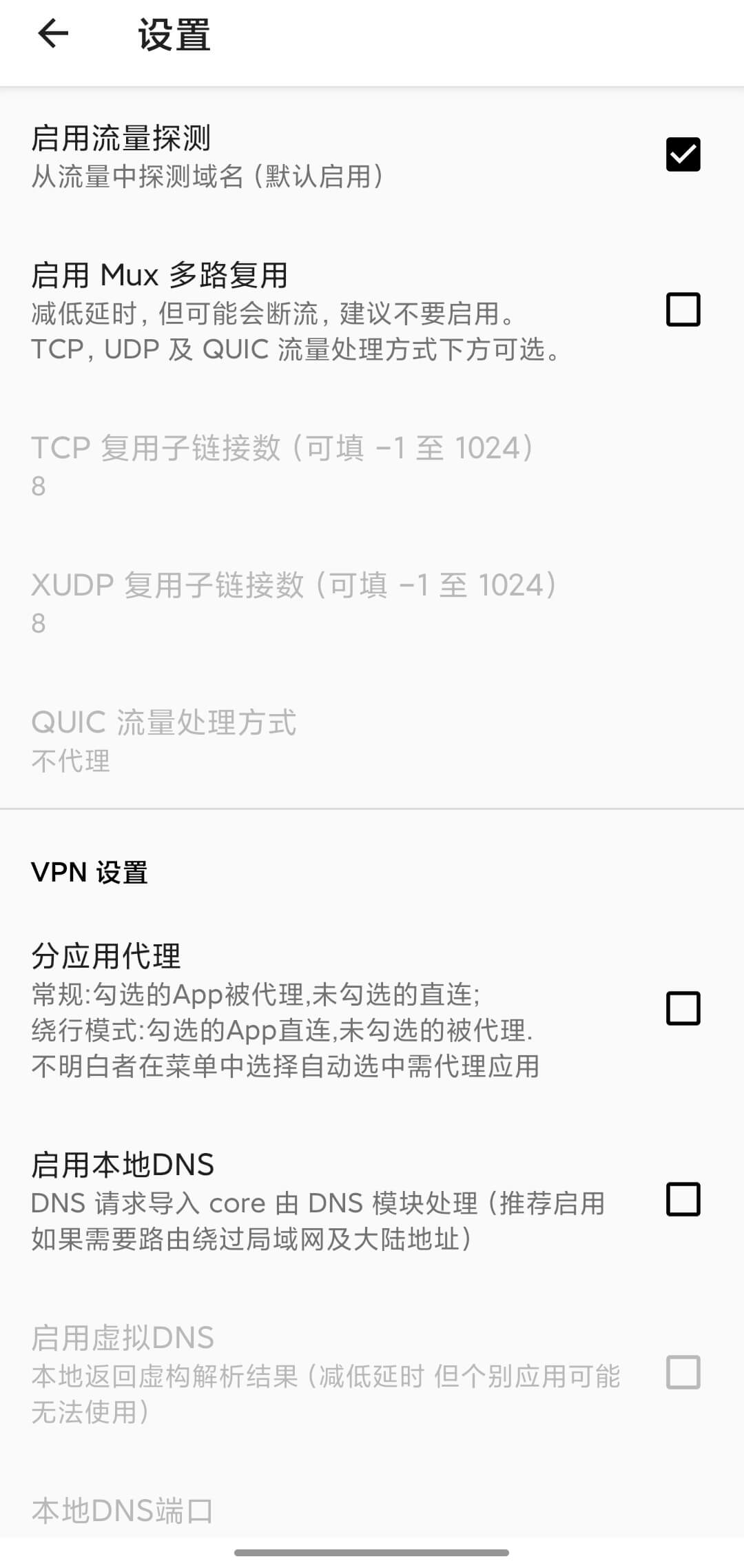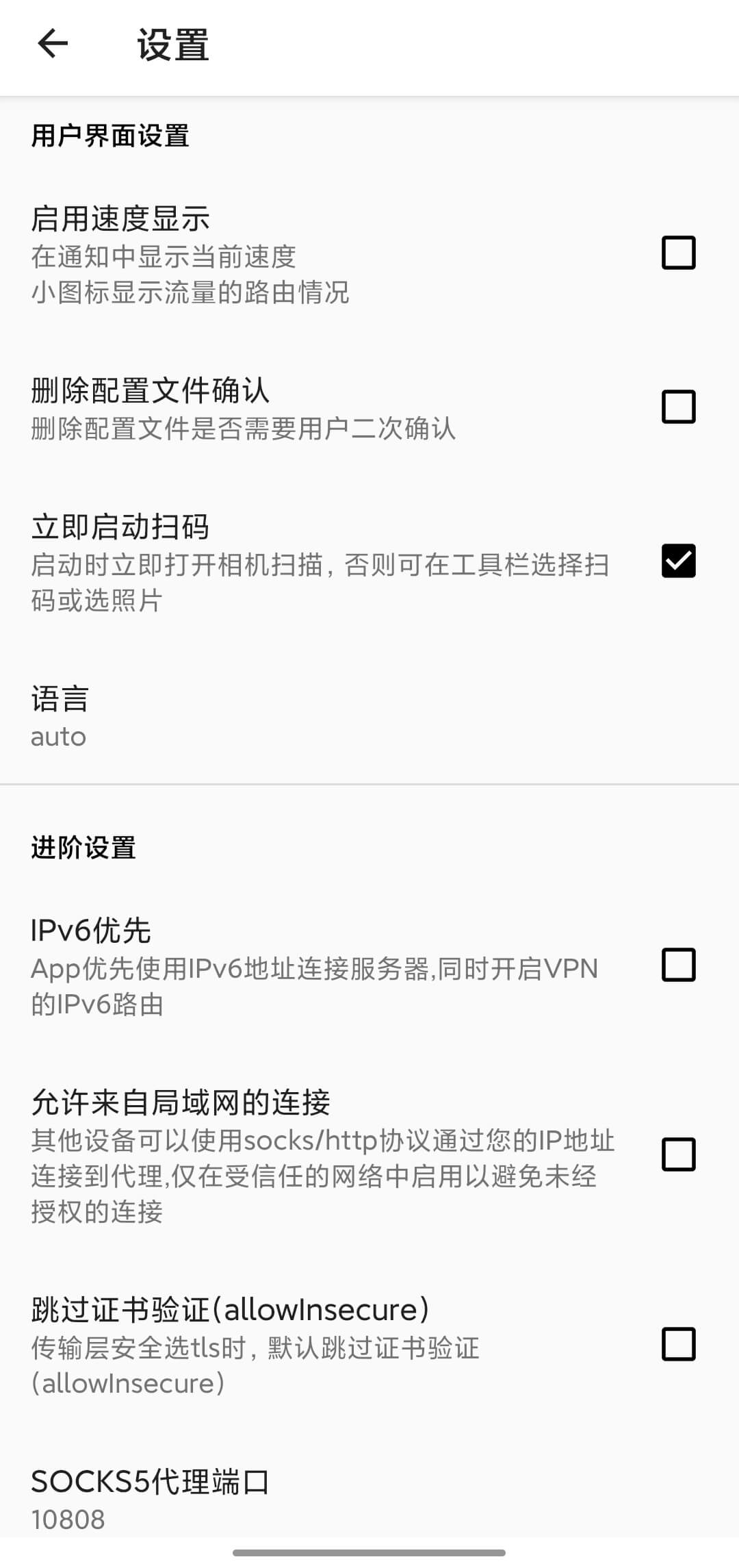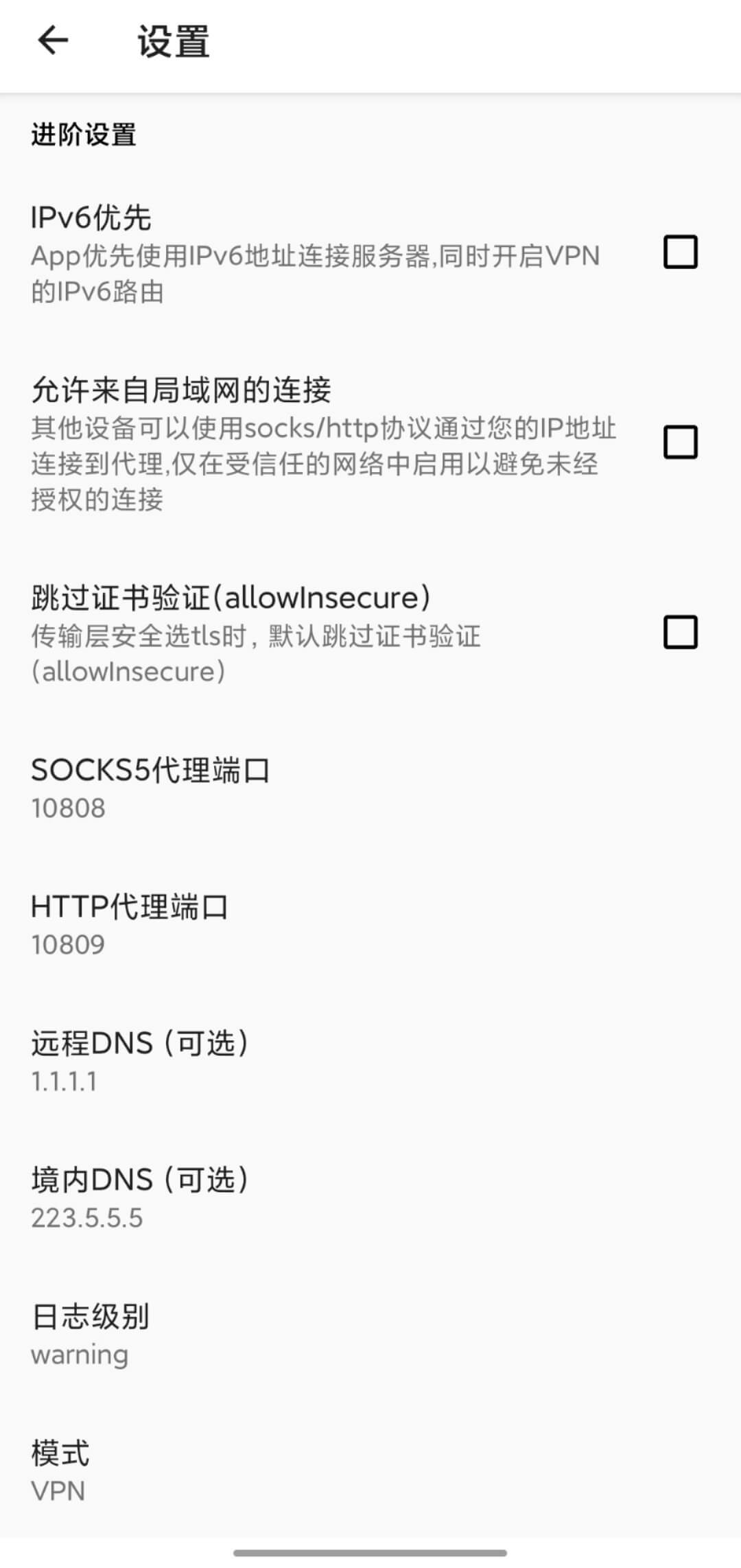 v2rayNG settings