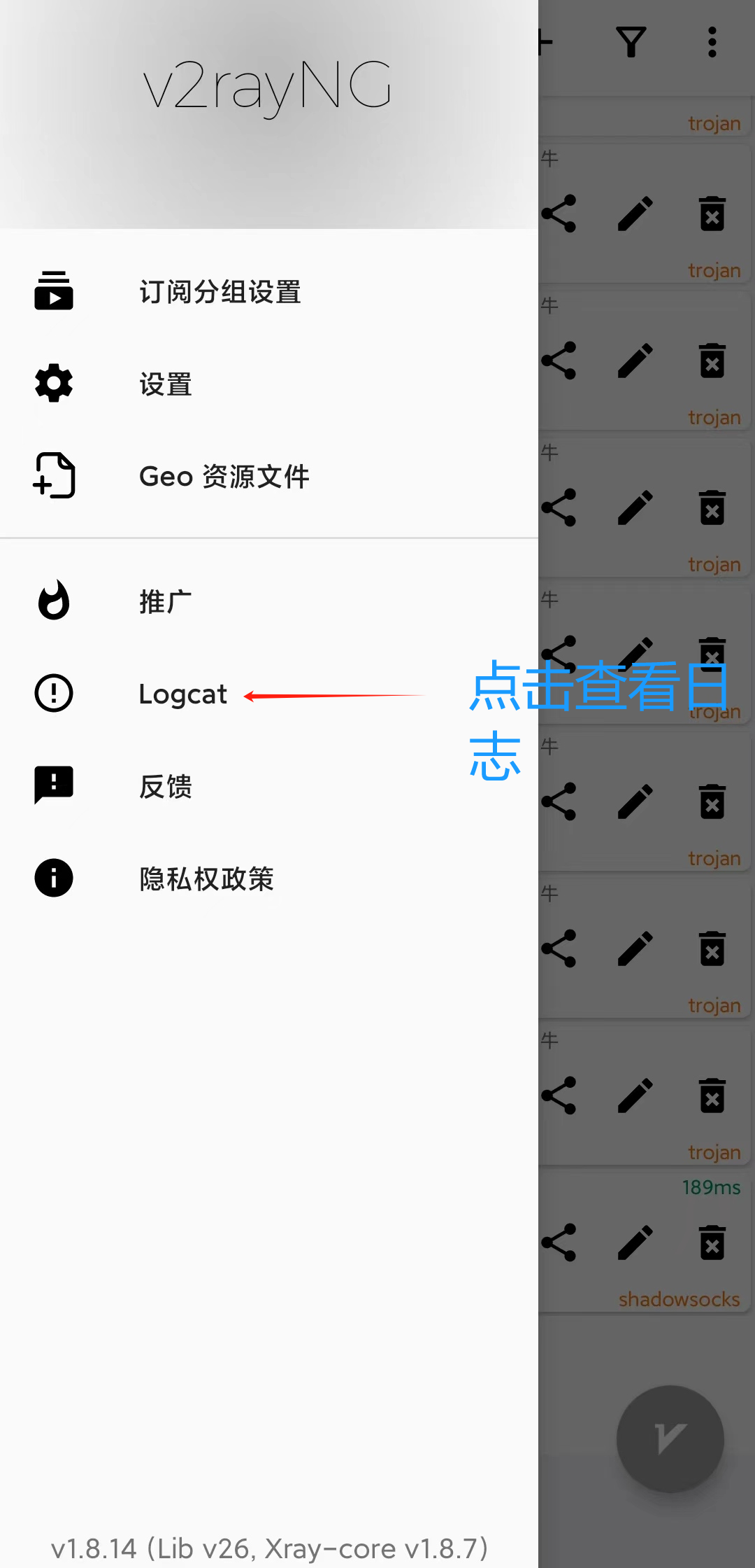v2rayNG logcat
