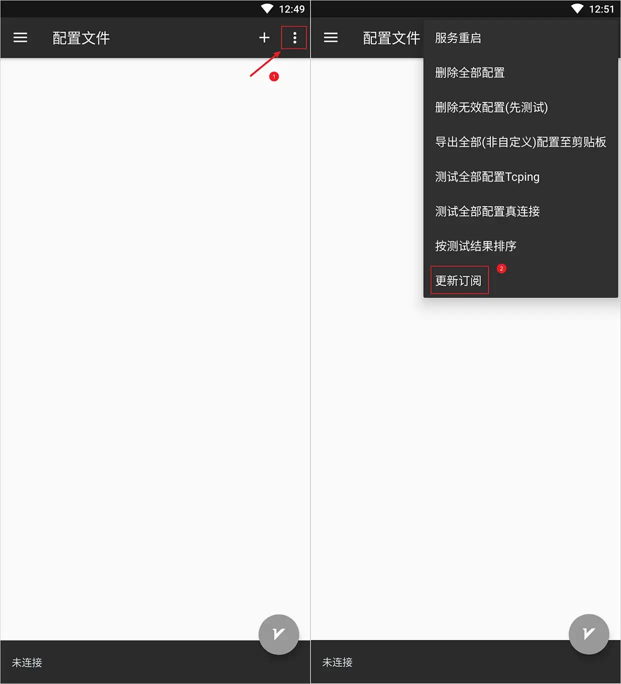 一个订阅多数情况下会包含多个分布在全球各地的不同节点,在 V2rayNG 魔法上网 APP 上,还需要手动操作才能获取到所有的机场节点。